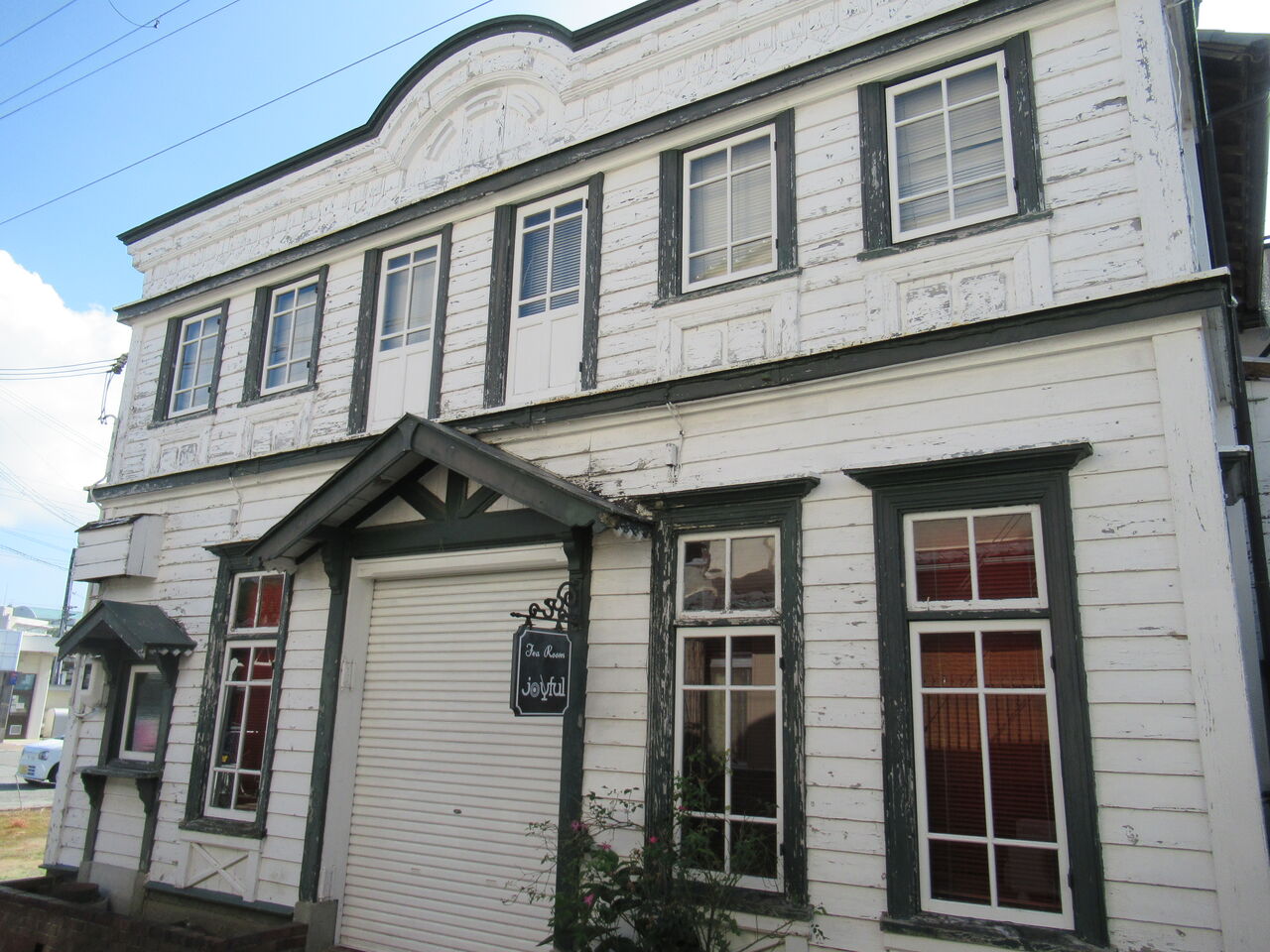 伝統的な日本建築の主屋に付属する白亜の洋館。商家の事務所だったのかも。