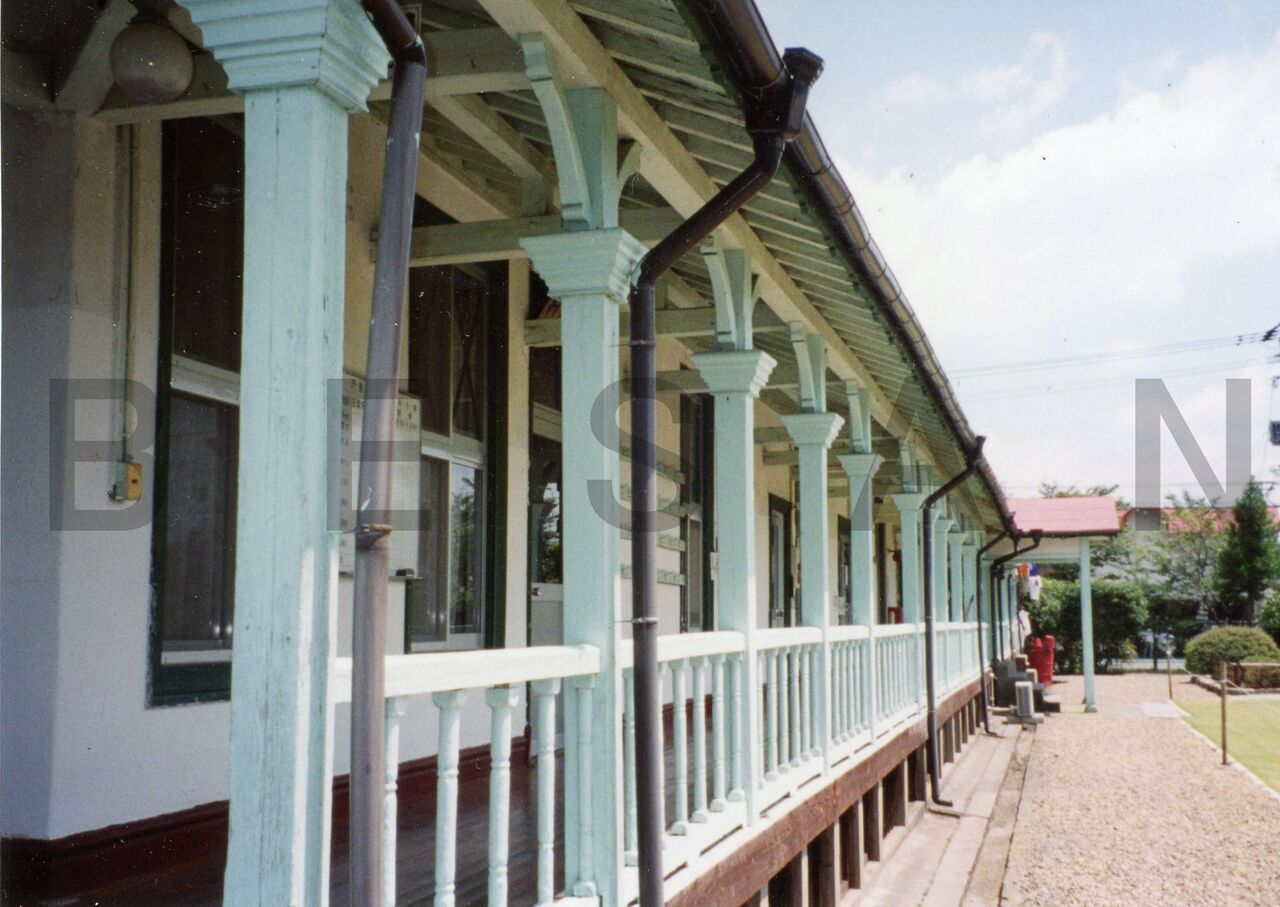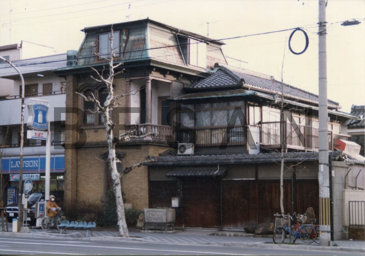 東寺の南東、九条大宮北西角の現在の京都銀行九条支店の北隣にあった古い洋館。窓の上部も意匠的で、ベランダの柱もギリシャ建築風の柱頭だったりと小規模ながら中々立派な洋館でした。ネットで調べると、ドラマのロケに使われたこともあったようでした。私が京都に戻った2001年頃にはすでになかった記憶があるので、2000年頃までに取り壊されたものと思われます。こちらの方がもう少し鮮明で接写した写真をUPされています。自分ももう少し寄った写真を撮れば良かったなと今更後悔。