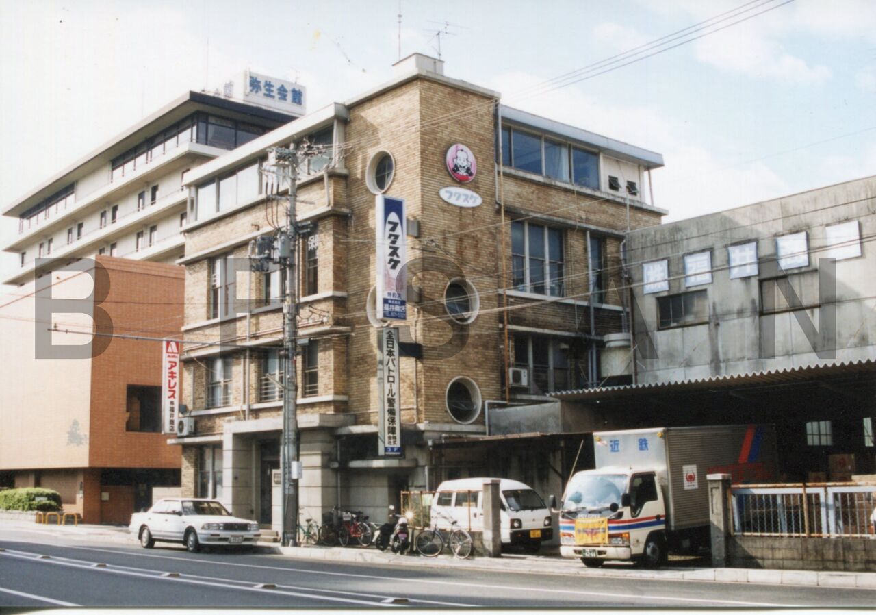 JR二条駅の近くに、かつて古いビルが建っていました。塔屋の丸窓とスクラッチタイルが特徴的なこのビルは、昭和10年に京都府購買販売連合会組合事務所として建てられ、戦後は福井商店の本社として使用された建物でした。2000年代に入りJR二条駅周辺の再開発が活発化し、JR二条駅の南にあった旧京都府食糧営団倉庫を始め、いくつかの古い建物や街並みが消え去り、この福井商店も2008年に取り壊されました。京都に帰還した2001年から新たな職場への通勤でこの福井商店をしばらく見てた記憶がありますが、結局再撮影しないまま姿を消しました。以来、今では気になったらなるべく1枚は撮影するようにしています。