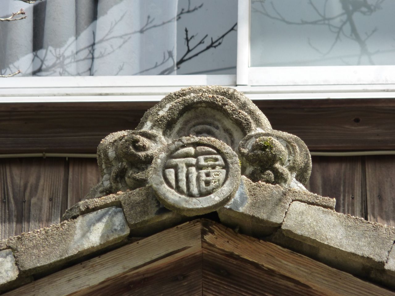 屋根瓦は昔懐かしいセメント瓦。その正面には「福」の字が。