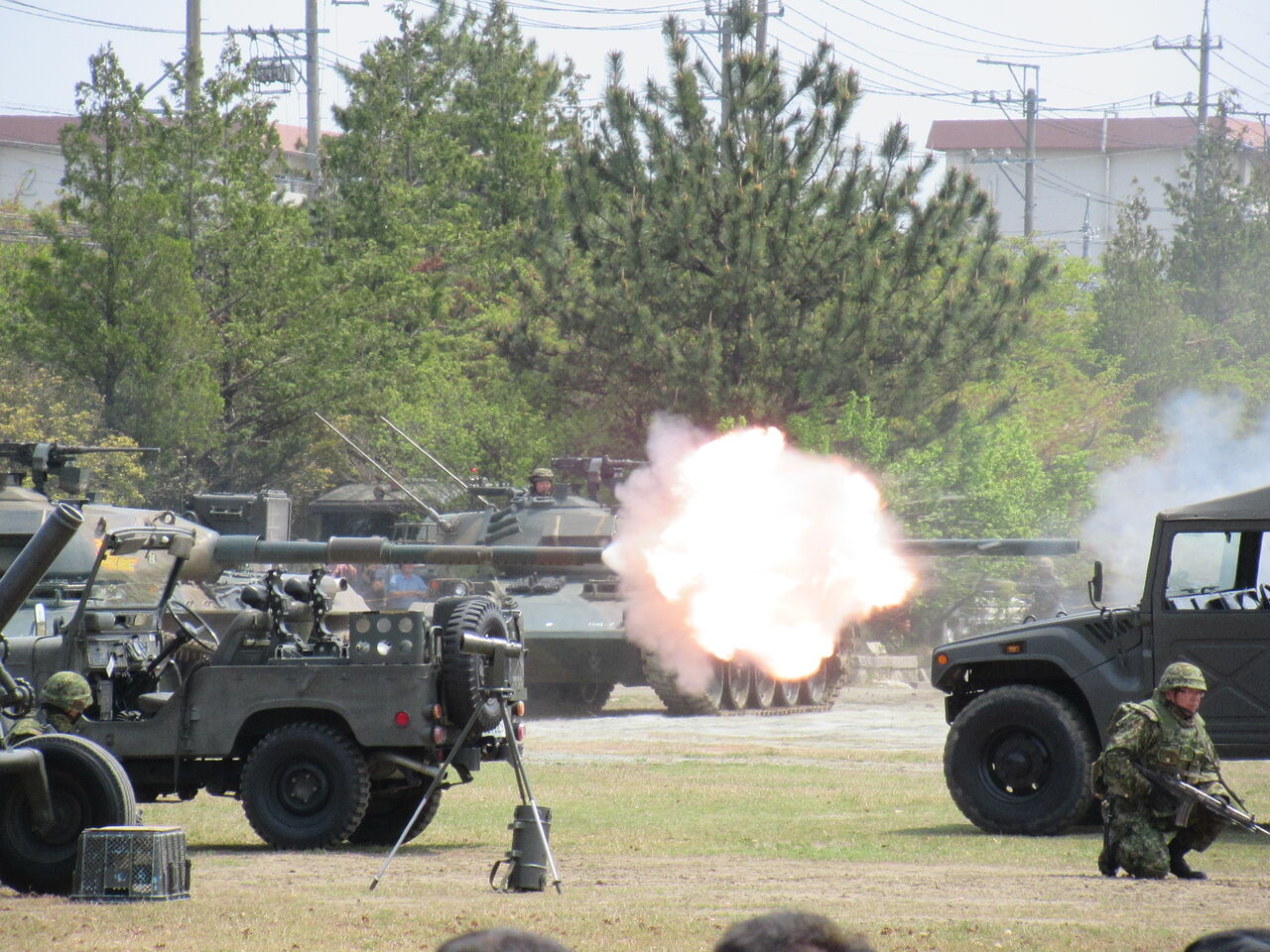 この日は演習場で訓練展示が行われました。これを見るのも目的の一つ。まぁコンデジではこれが精一杯でしたが・・・