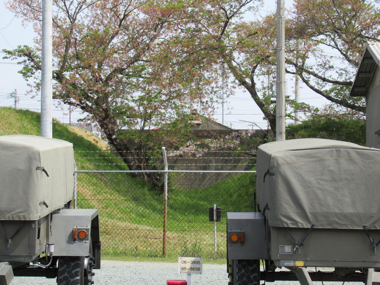 遠くに見える防爆壁の土塁に囲まれた弾薬庫。これも旧軍時代の弾薬庫をそのまま使用しています。