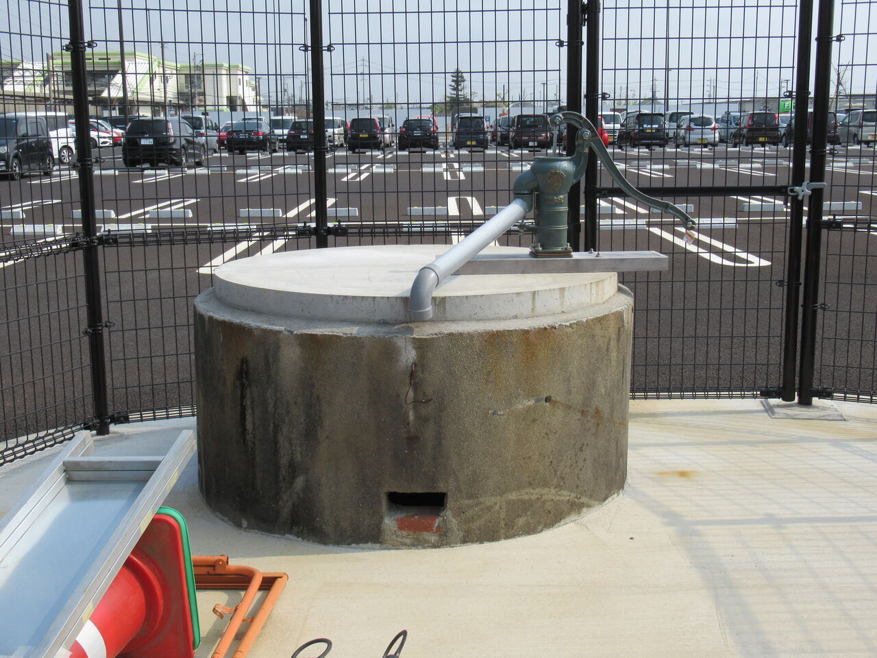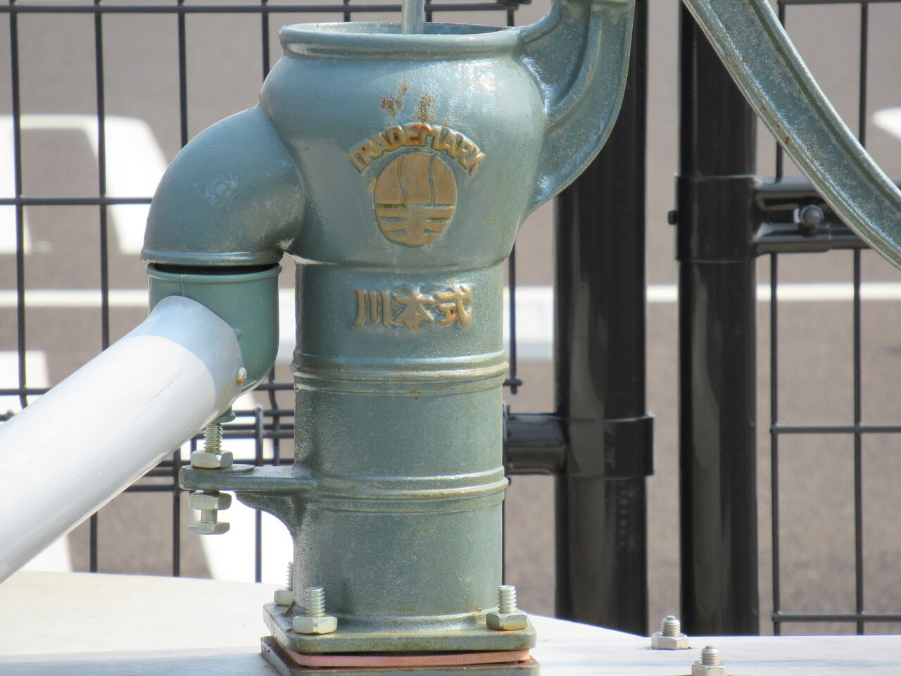 井戸の上にあるポンプ。当時の物かは分かりませんが古そうなのは確かです。