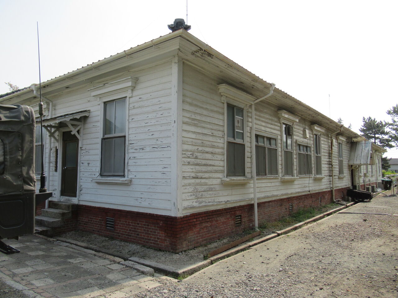 用途不明の木造建物。当時の物であることは間違いなく、陸軍の星章入りの鬼瓦が今も乗っています。