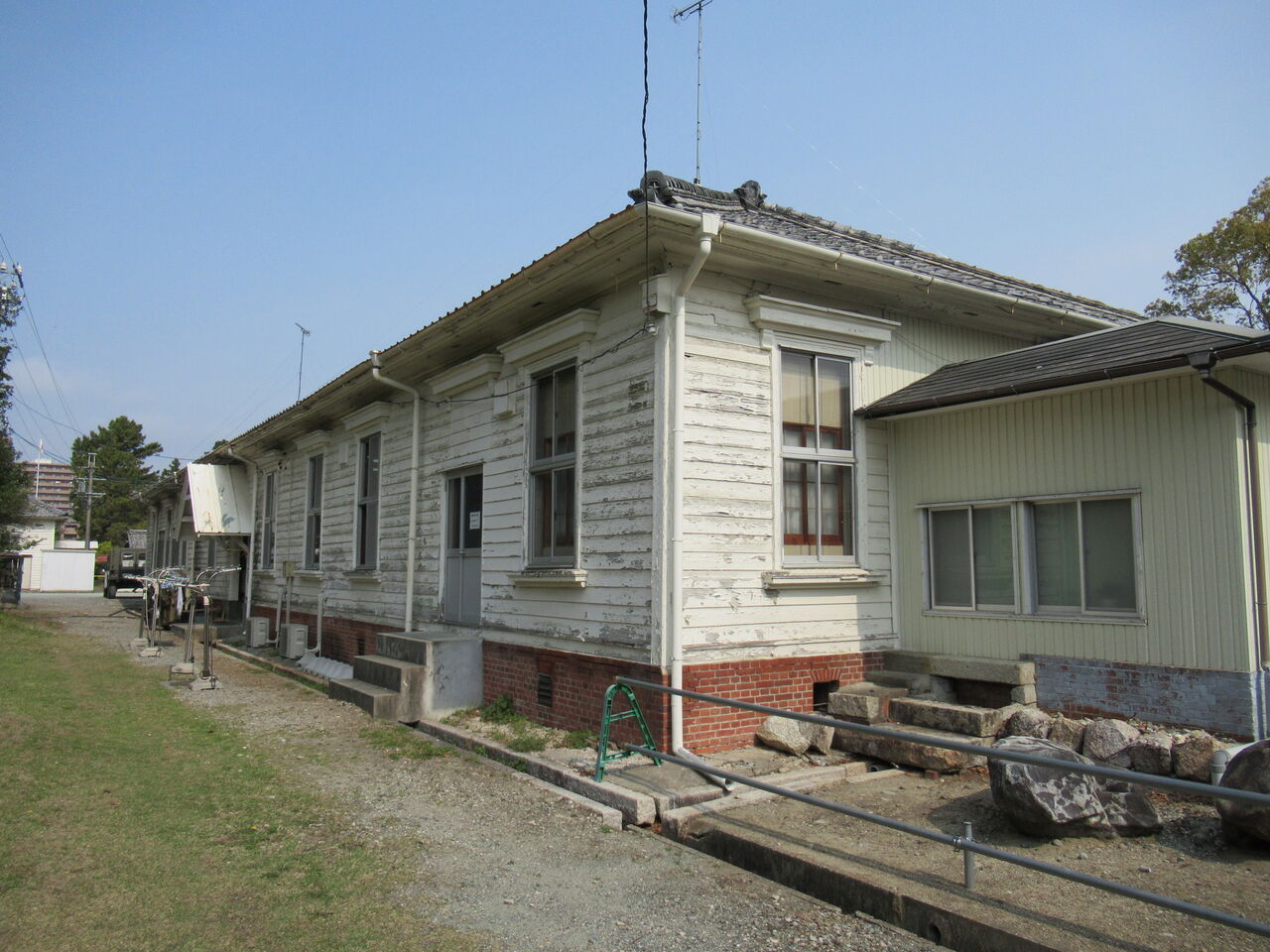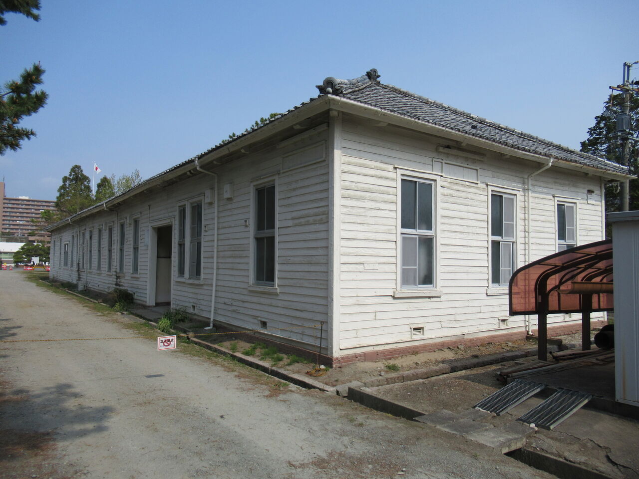 歩兵第三十三連隊の東側には津陸軍病院がありました。現在もいくつかの建物が残されています。この建物は娯楽室だった「愛国寮」。昭和10年に建てられたもので、名前から恐らく愛国婦人会の寄付で建てられたものと思われます。