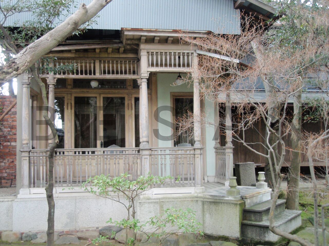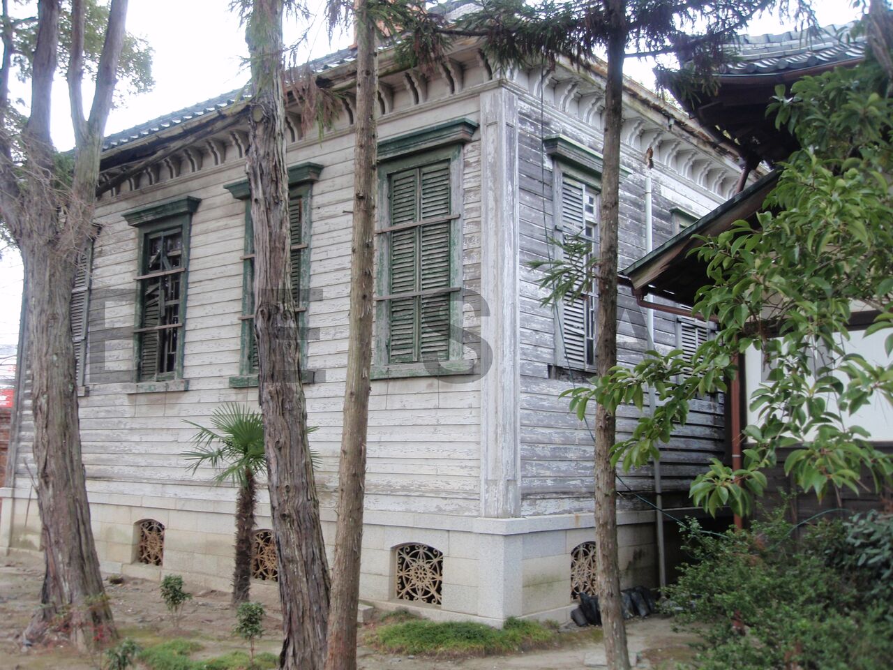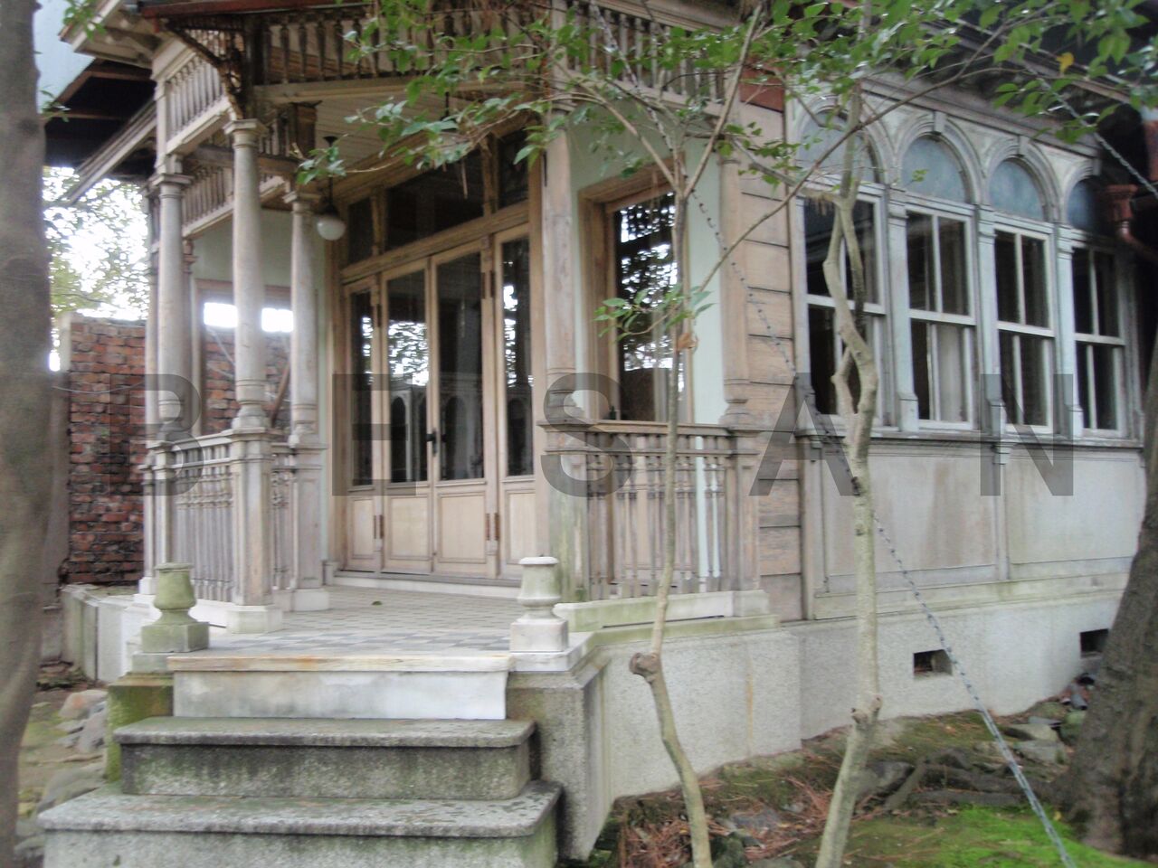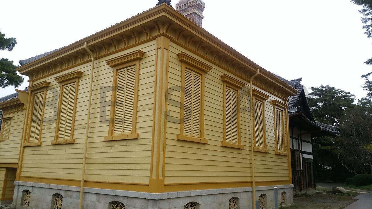 修理前の洋館の姿。黄色は当初の色だそうです。隣接する御殿と合わせて建てられました。御殿の方は写真が見当たらず。