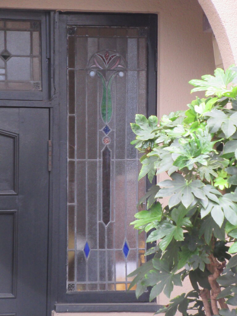 玄関横のステンドグラス。ステンドグラスのある家って憧れますね。