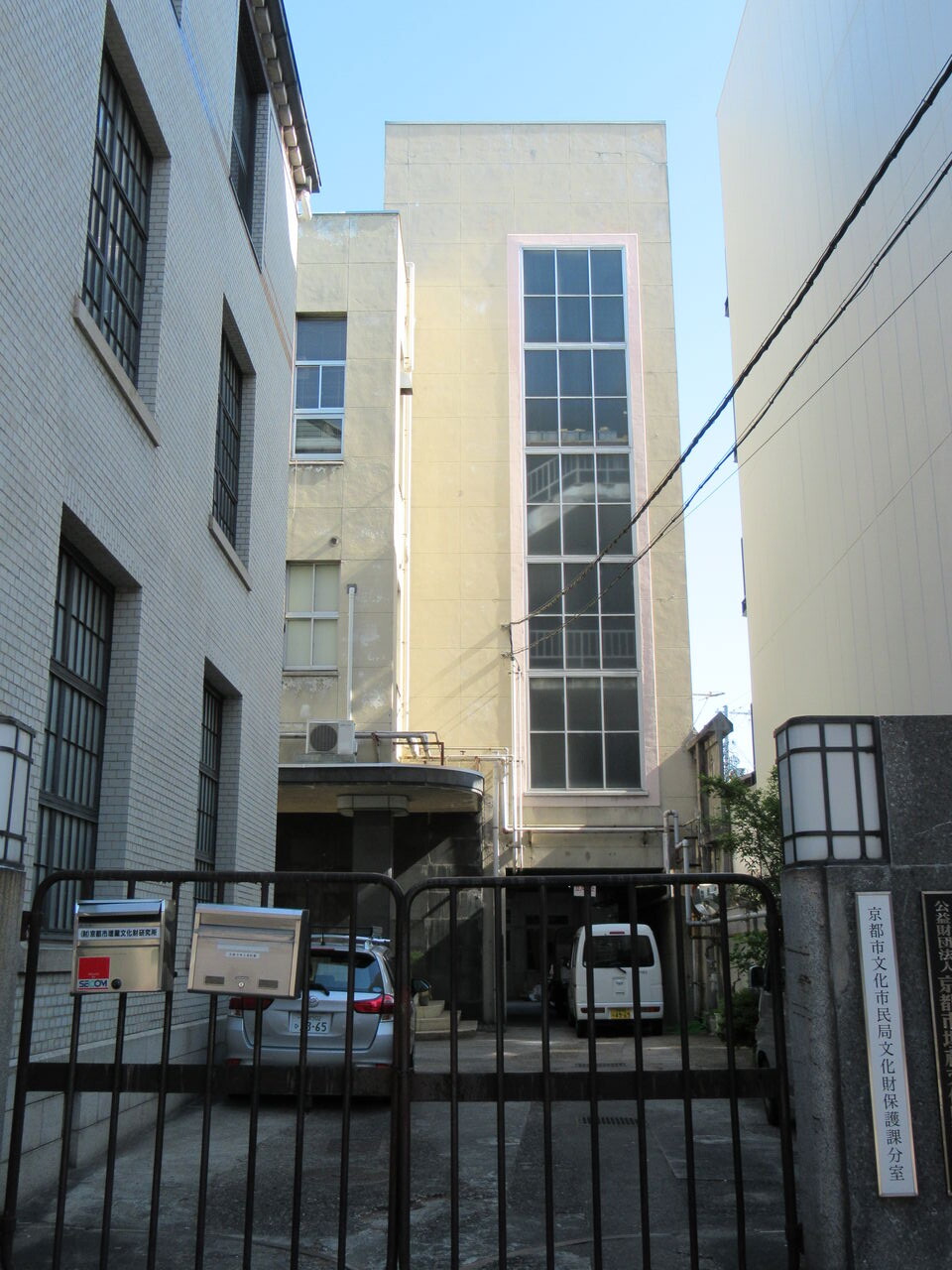 旧西陣織物会館事務所。昭和11年。考古資料館の背後にあるビルも戦前建築。モダンな建物です。現在は京都市埋蔵文化財研究所の事務所。