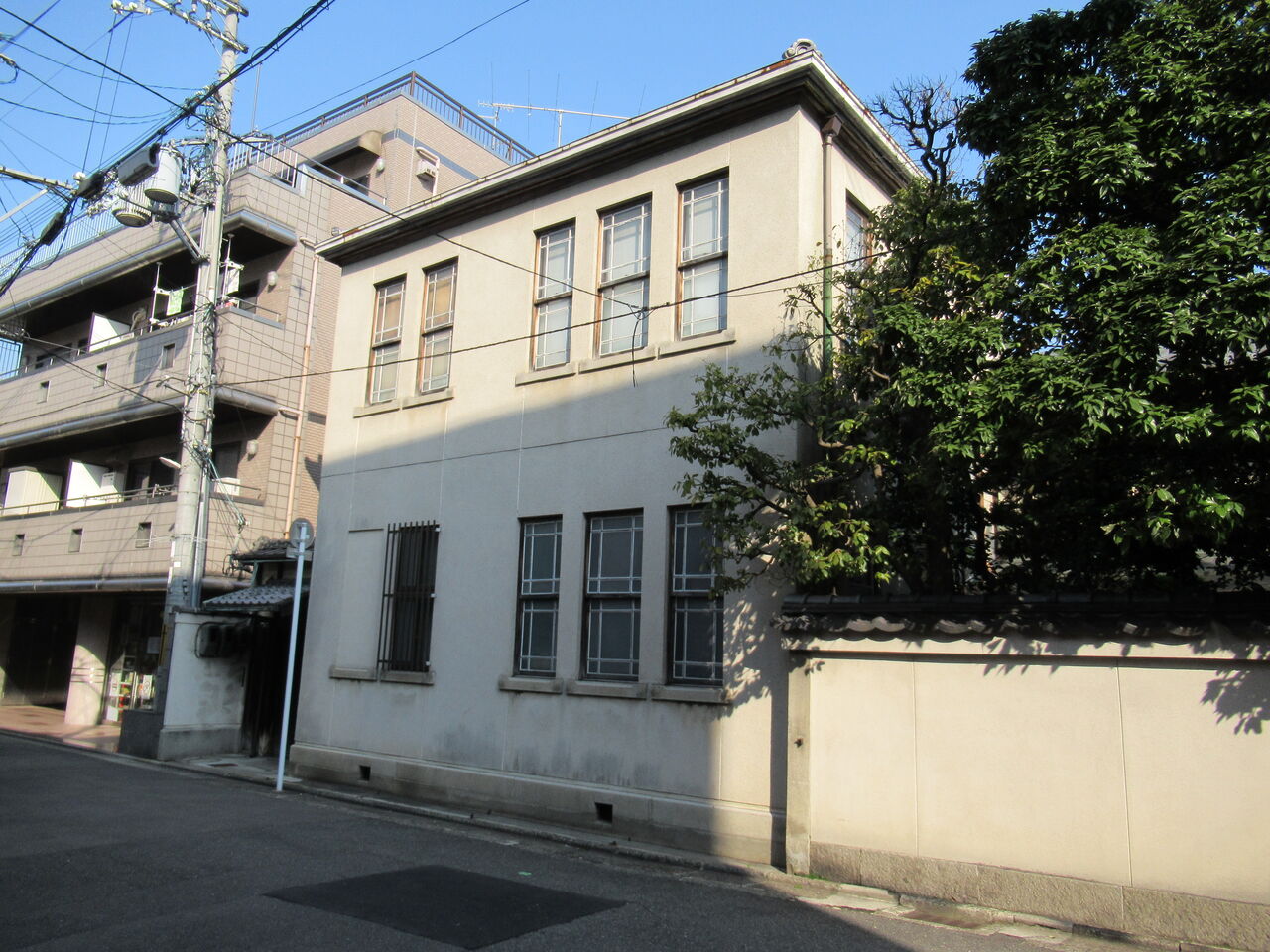 長田学舎。相国寺北門前町。RC造と思われる和風建築。