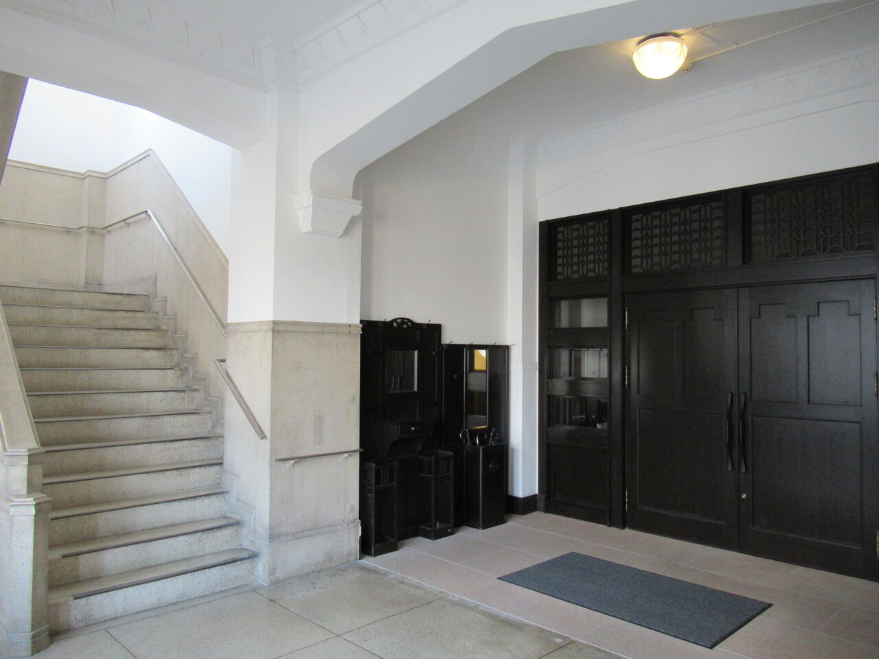 ゴシックアーチの玄関を入ると、1階階段があります。