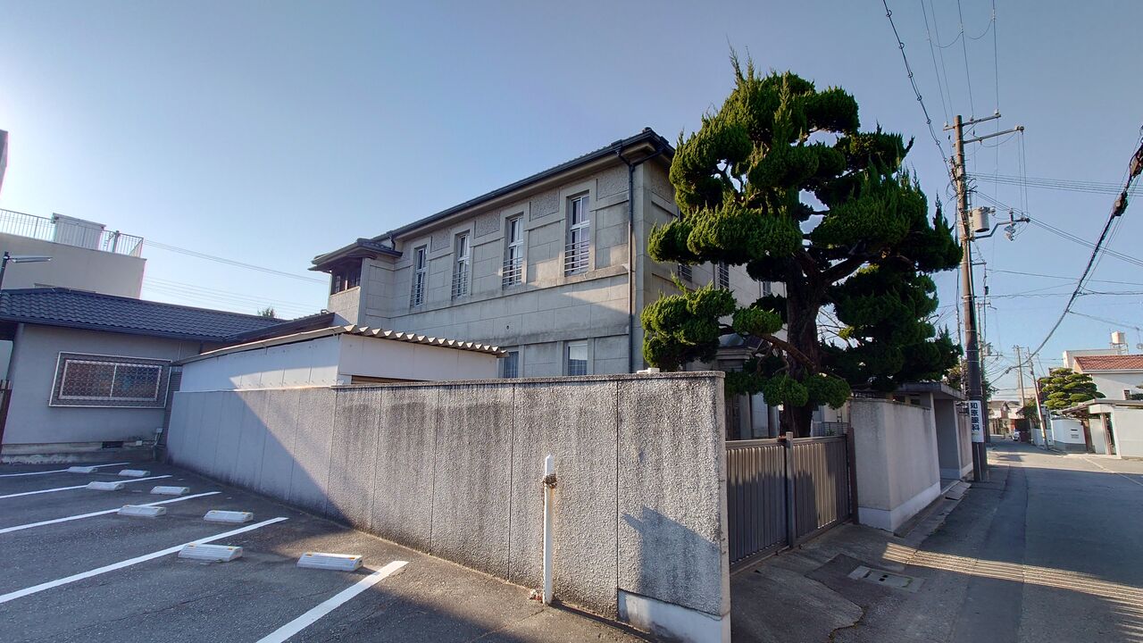 旧タムラ技研本社。新在家。外観は洋風に改装している町屋建築。現在は民家のようですが、大切に使われています。