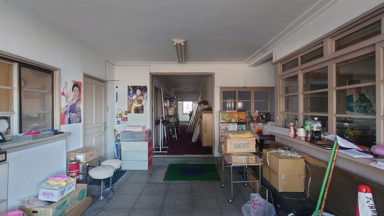 玄関ドアから内部。内部も当時の雰囲気が残されています。この建物も近いうちに取り壊されるようです。別サイトで内部の写真がありましたが、一度見てみたかったくらいの室内でした。