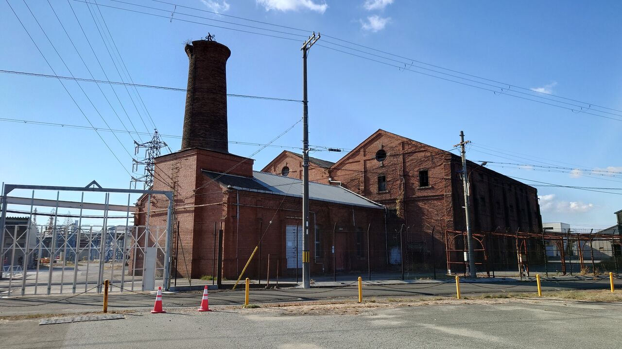 ダイセル化学工業姫路製造所網干工場旧発電所。新在家。明治43年。大きな煉瓦造の建物。