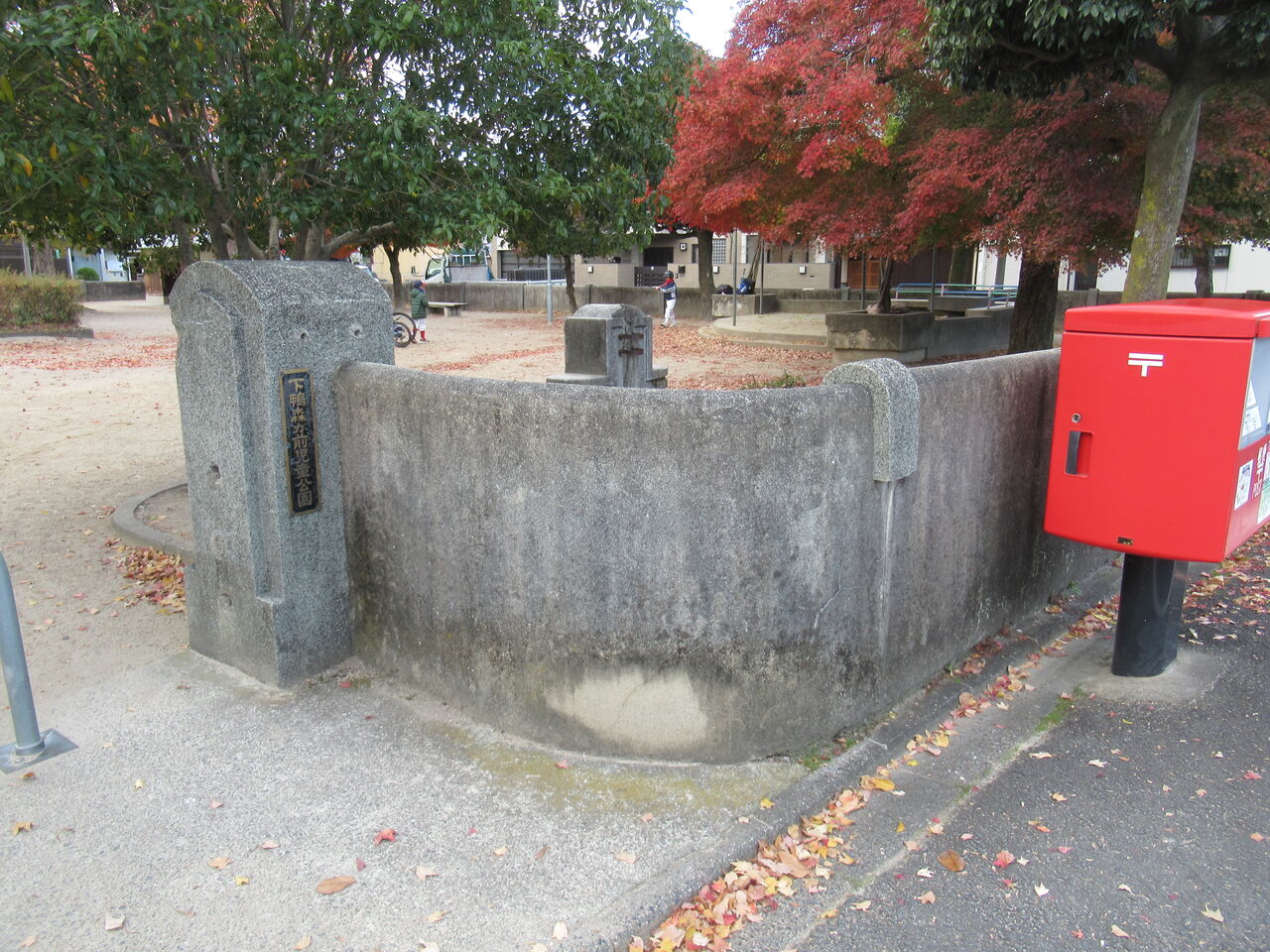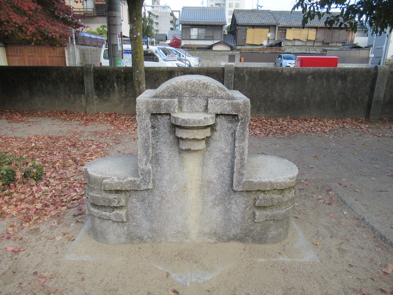 下鴨森ガ前児童公園には国旗掲揚台も残されています。門柱と同じ感じでセセッションっぽいデザインがされています。戦前の日本では、公園などの多くの人が集まる公共の場において、国旗の掲揚が推奨されました。そのため日本各地の公園内や町内に国旗掲揚台が設置されていきました。それらは町内会や個人・団体の寄付により建てられました。今でも京都市内の戦前の公園内や街角にいくつか残されています。
