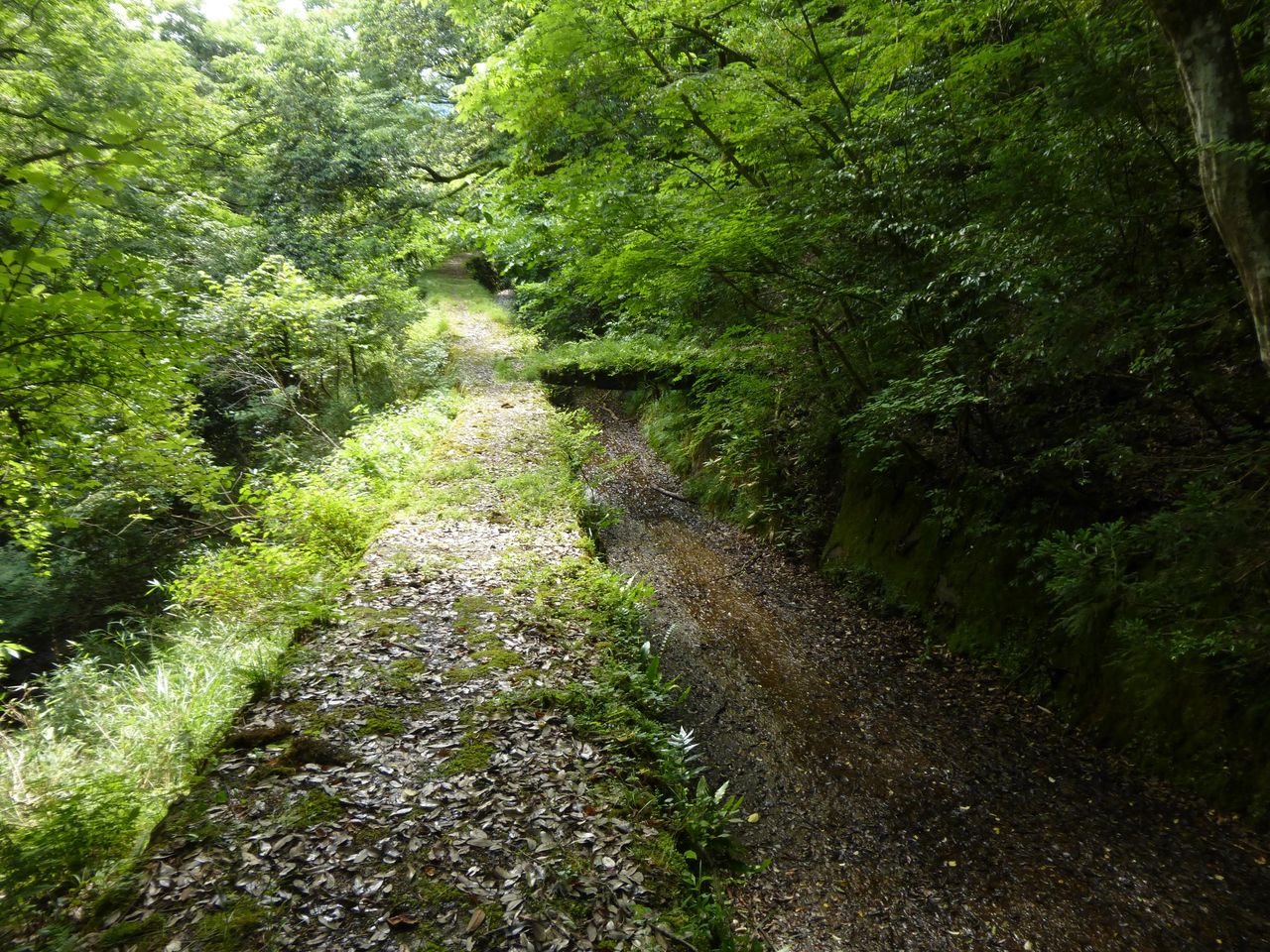 貯水池へと続くであろうかつての管理道と通水路にたどり着きました。