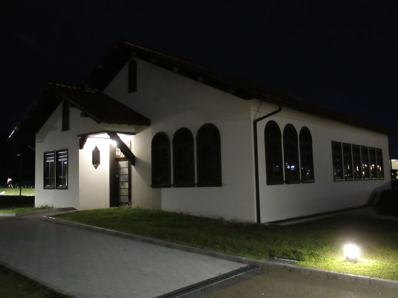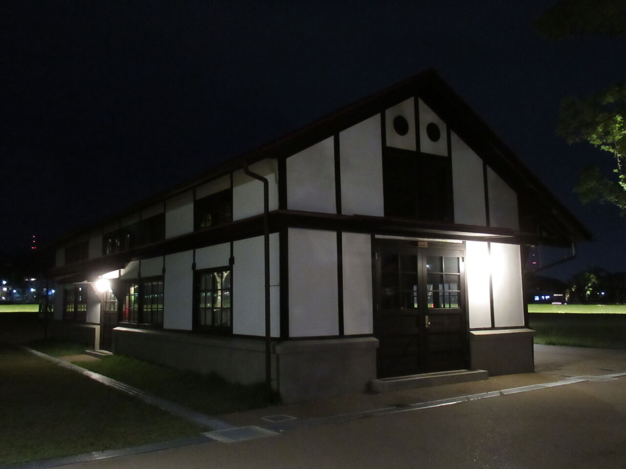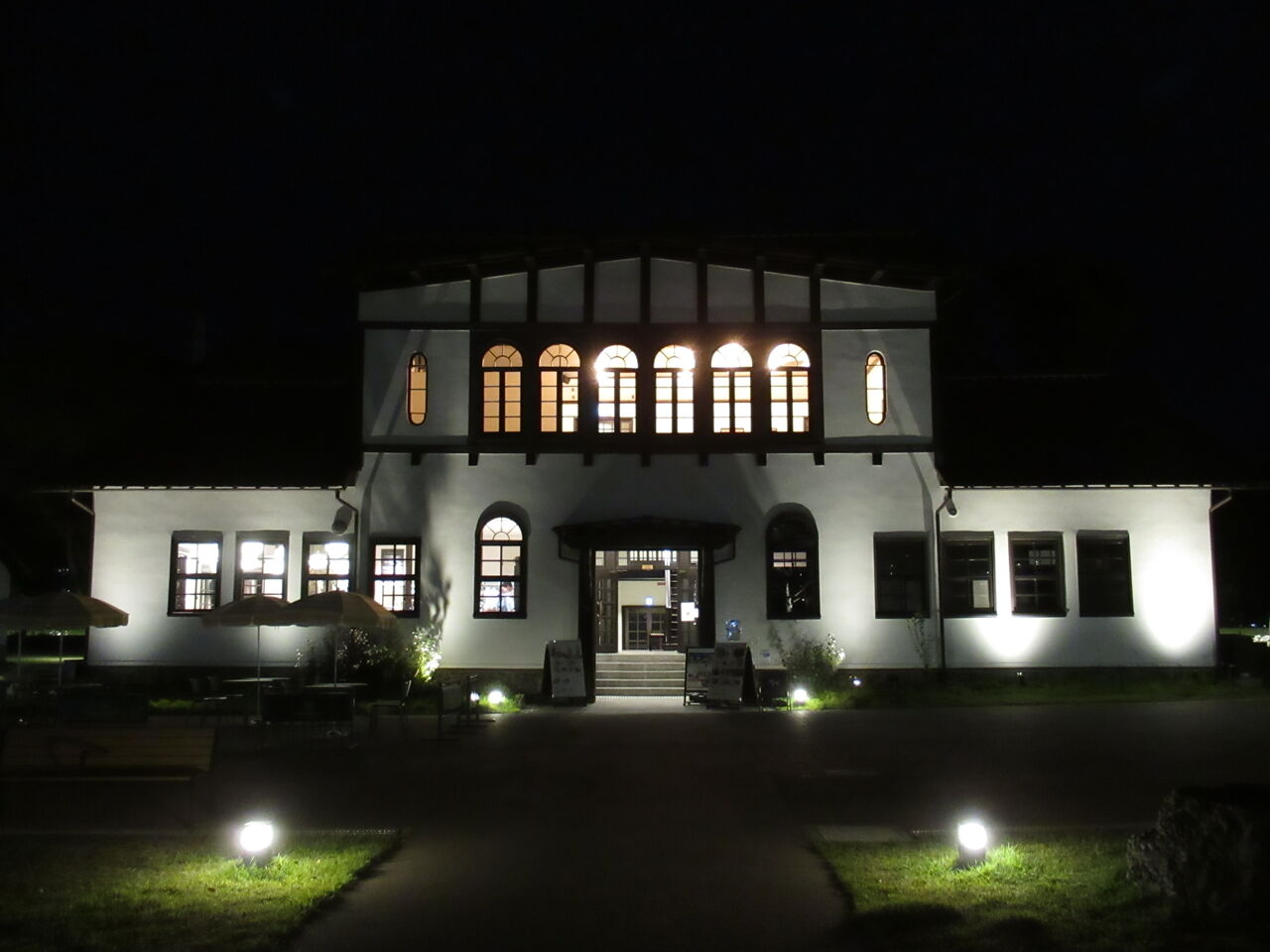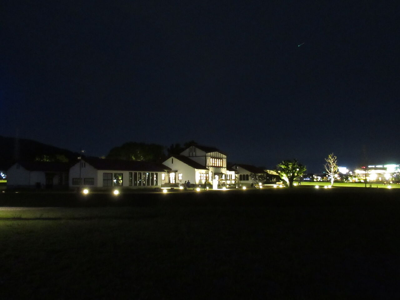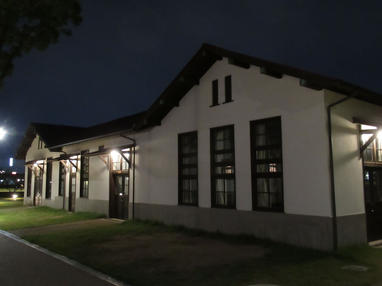 旧京都大学大学院農学研究科附属農場建物の夜景(安満遺跡公園)
