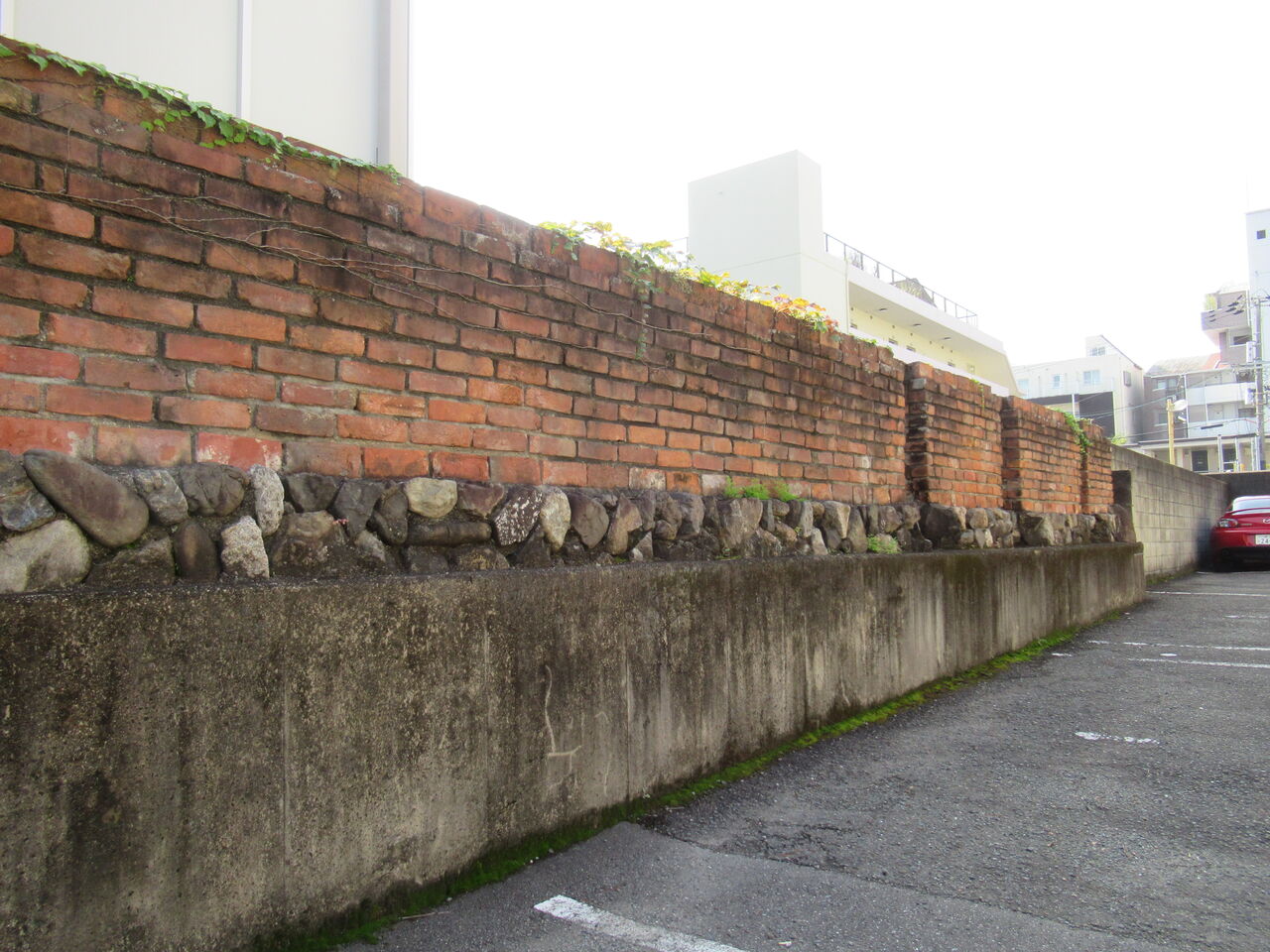Y邸の側にある煉瓦塀。現在Y邸と煉瓦塀の間は駐車場となってますが、かつてはここまでが敷地だったのかもしれません。