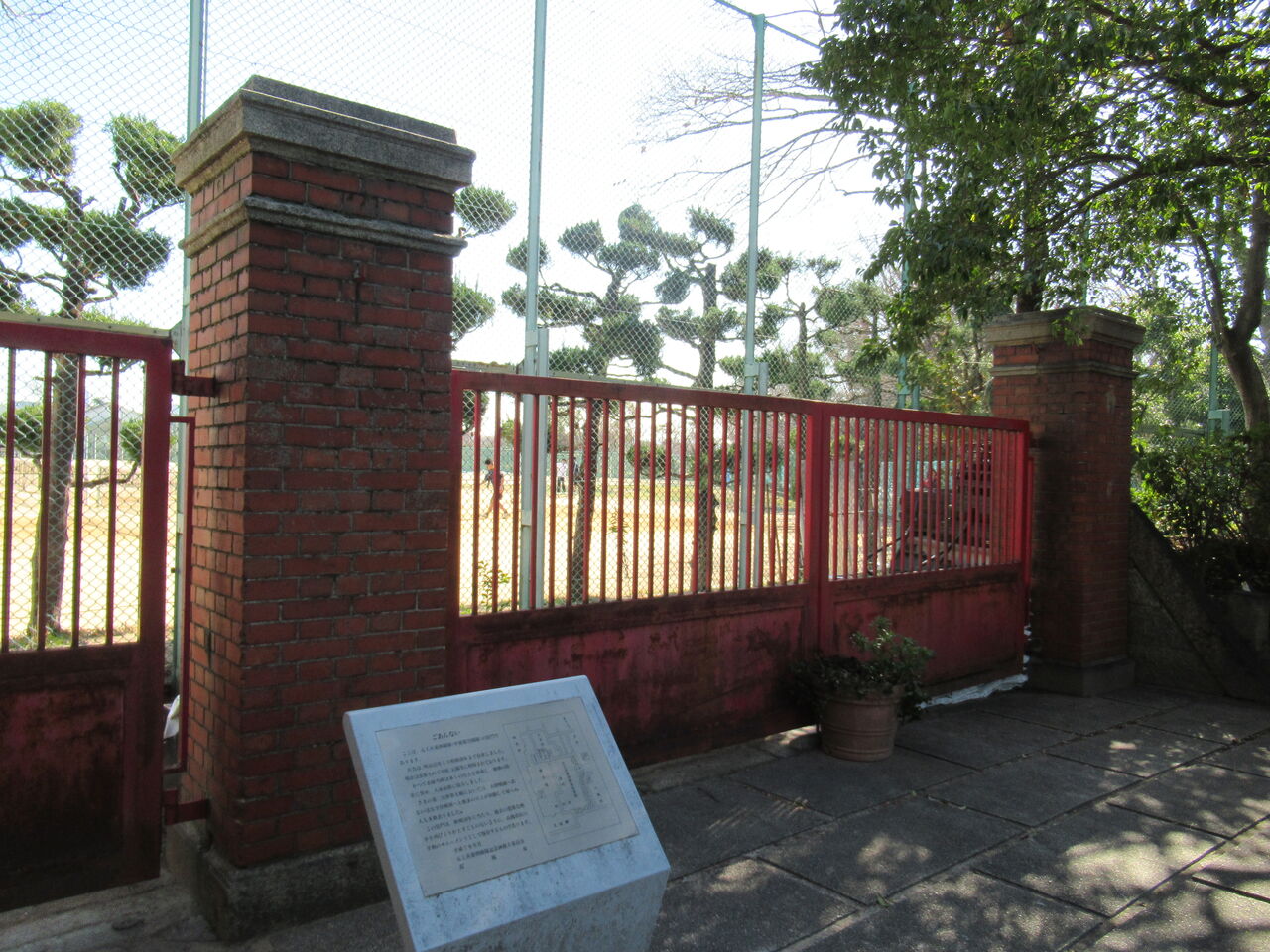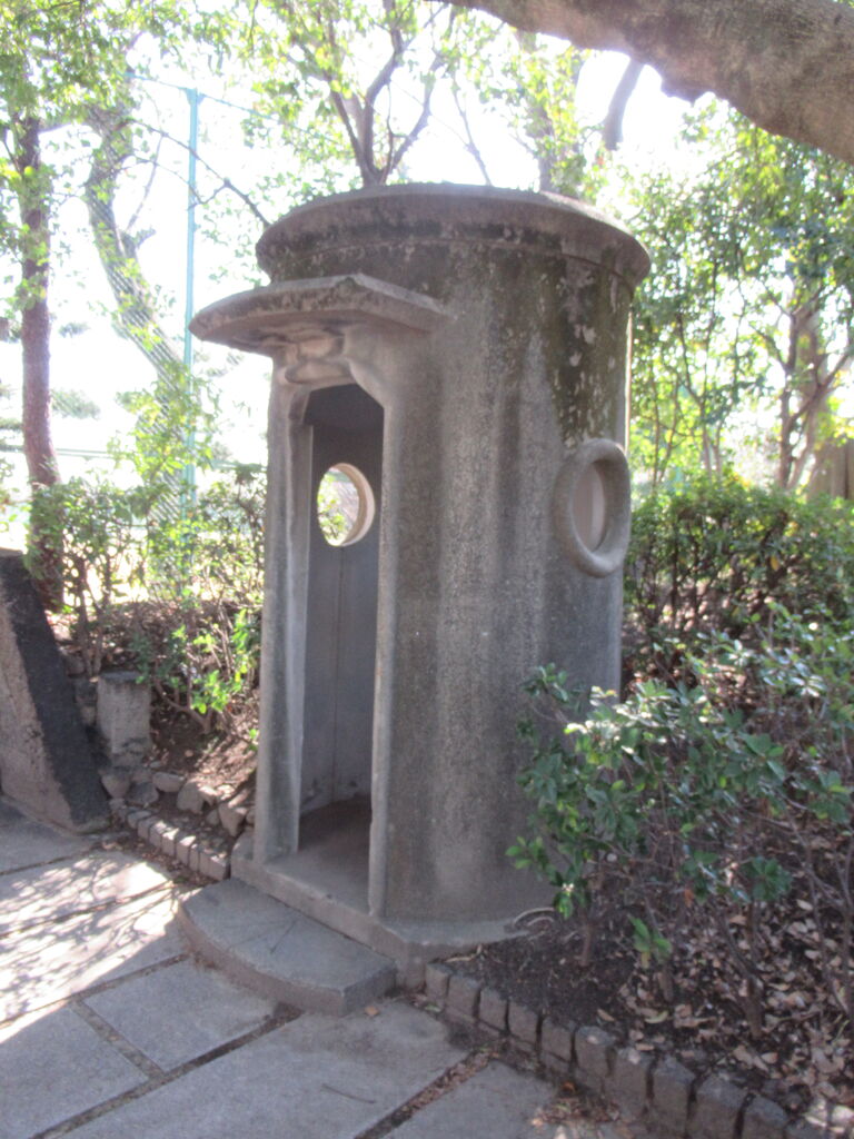 歩哨舎。工兵第4連隊の跡地は現在、高槻市立第一中学校となっていますが、営門と歩哨舎と境界杭が残されています。