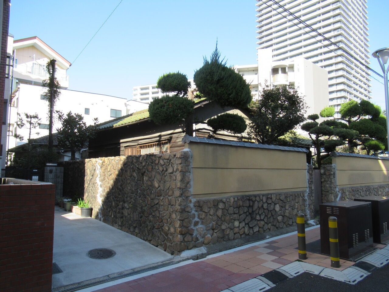マンションの裏の木造建物。城内町。高槻商工会議所北側にあるマンションは、かつて高槻憲兵分遣隊の敷地でしたが、その裏に戦前と思われる古い平屋の木造建物が残されています。かつての高槻憲兵分遣隊の建物の一部だった可能性を含め、ここに紹介。